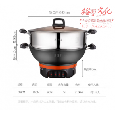 惠当家(Hui Dang Jia)电炒锅多功能电热锅电锅加厚电蒸锅电煮锅一体铸铁锅电火锅多用途锅 铸铁锅身-32cm单笼 SKU:yzwhyp110458