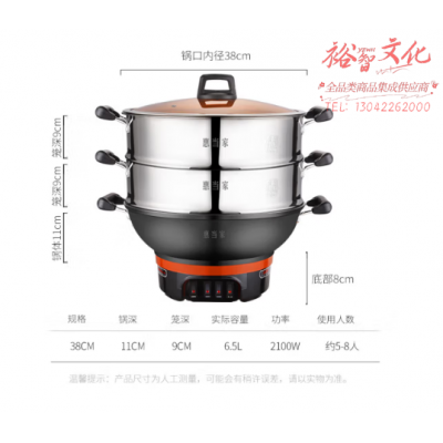 惠当家(Hui Dang Jia)电炒锅多功能电热锅电锅加厚电蒸锅电煮锅一体铸铁锅电火锅多用途锅 铸铁锅身-38cm双笼 SKU:yzwhyp110475
