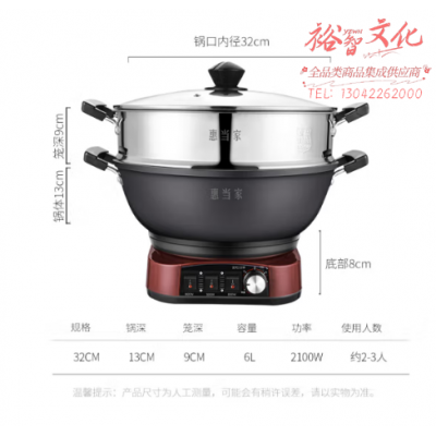 首页 > 用具 > 其他厨房用具 > 惠当家(Hui Dang Jia)电炒锅多功能电热锅电锅定时电蒸锅一体加厚铸铁锅电煮锅多用途锅 铸铁锅身-32cm单笼【定时款】 SKU:yzwhyp110518