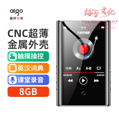 首页 > 广播、电视、电影设备 > 组合音像设备 > 会议、广播及音乐欣赏系统 > 爱国者aigo MP3-502 8G蓝牙词典外放 全面触屏mp4mp5无损音乐HIFI播放器学生英语随身听运动便携金属灰色 SKU:yzwhyp110770