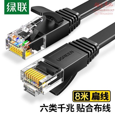 绿联(UGREEN)50177 六类CAT6类网线 千兆网络连接线 电脑宽带家用非屏蔽扁平跳线 成品网线 黑色 8米 SKU:yzwhyp110847