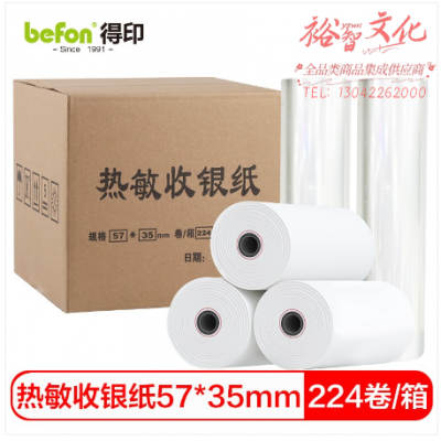 首页 > 纸及纸质品 > 纸及纸板(不包含复印纸) > befon得印 中高品质热敏收银纸57*35mm美团外卖po超市小票 224卷(10米/卷)餐饮收银机打印纸足米数 SKU:yzwhyp319753