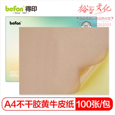 befon得印 A4不干胶黄牛皮纸 背胶贴纸 电脑打印标签纸 黄牛皮纸210*297mm 100张/包 SKU:yzwhyp319784