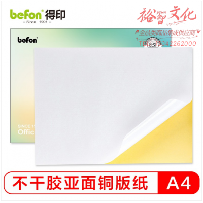 得印(befon)A4不干胶亚面铜版纸 背胶贴纸 电脑打印标签纸 亚面210*297mm 100张/包 SKU:yzwhyp319789