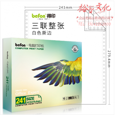 得印(befon)三联整张打印纸 白色 针式电脑打印纸 241-3( 80列 撕边 600页/1箱) SKU:yzwhyp319791