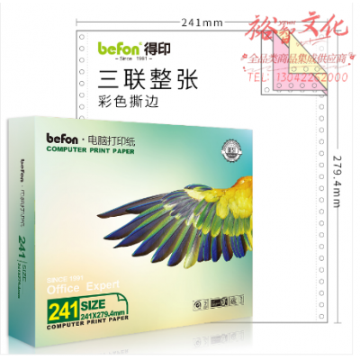 得印(befon)三联整张打印纸 彩色 针式电脑打印纸 241-3( 80列 撕边 600页/1箱) SKU:yzwhyp319801