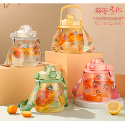 富光 FG0325-1500清动大肚杯 塑料壶吸管杯带背带 绿色1500ml SKU:yzwhyp319803