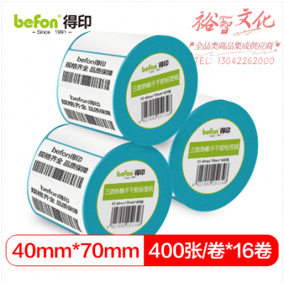 befon得印 三防热敏不干胶标签纸 40*70*400枚 单排圆角16卷 SKU:yzwhyp319829