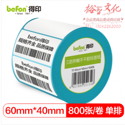 befon得印 三防热敏标签打印纸60mm*40mm不干胶面单电子秤条码纸800张 SKU:yzwhyp319857