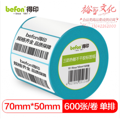 首页 > 纸及纸质品 > 纸及纸板(不包含复印纸) > befon得印 三防热敏标签打印纸70mm*50mm不干胶面单电子秤条码纸600张 SKU:yzwhyp319858