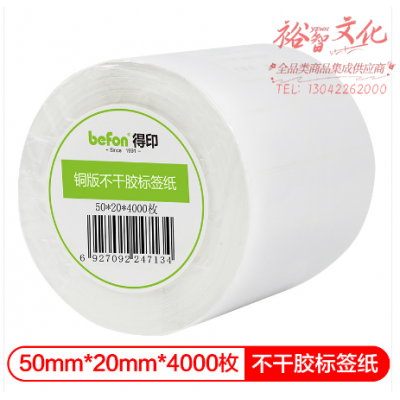 得印(befon)不干胶标签纸 铜版纸 50mm*20mm*4000枚 双排 条码纸 打印贴纸 SKU:yzwhyp319882