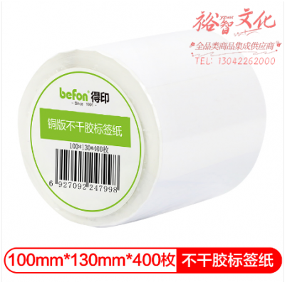 首页 > 纸及纸质品 > 纸及纸板(不包含复印纸) > 得印(befon)不干胶标签纸 铜版纸 100mm*130mm*400枚 单排 条码纸 打印贴纸 SKU:yzwhyp319930
