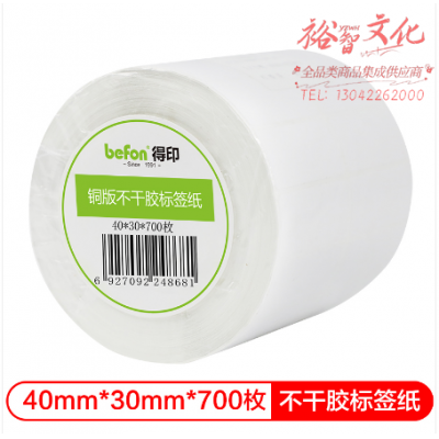 得印(befon)不干胶标签纸 铜版纸 40mm*30mm 700枚 双排 条码纸 打印贴纸 SKU:yzwhyp319931
