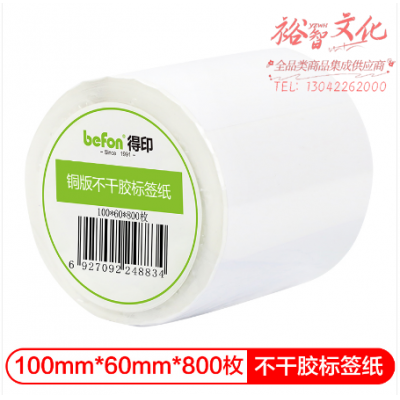得印(befon)不干胶标签纸 铜版纸100mm*60mm 800枚 单排 条码纸 打印贴纸 SKU:yzwhyp319936
