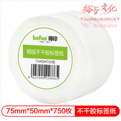 首页 > 纸及纸质品 > 纸及纸板(不包含复印纸) > 得印(befon)不干胶标签纸 铜版纸75mm*50mm 750枚 单排 条码纸 打印贴纸 SKU:yzwhyp319952