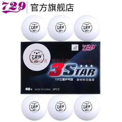 729 乒乓球三星 新材料40+ 专业比赛用3星无缝球 白色 6个/盒
