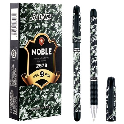 宝克(BAOKE)PC2578 0.5mm中性笔学生用笔迷彩笔杆水笔 黑色 12支/盒 SKU:yzwhyp203827
