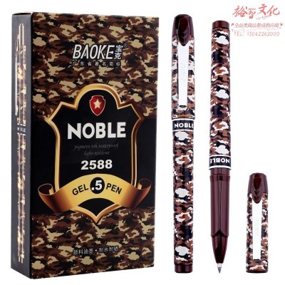 宝克(BAOKE)PC2588 0.5mm-黑色中性笔学生用笔水笔迷彩笔杆 12支/盒 SKU:yzwhyp203834