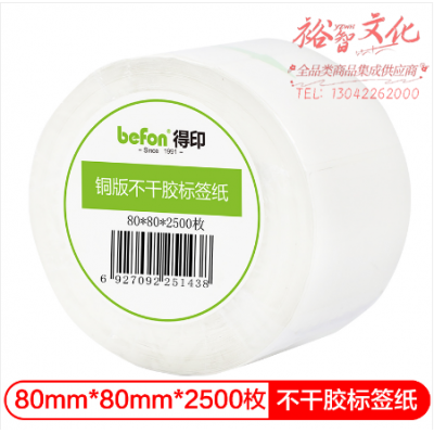得印(befon)不干胶标签纸 铜版纸 80mm*80mm*2500枚 单排 条码纸 打印贴纸 SKU:yzwhyp319961