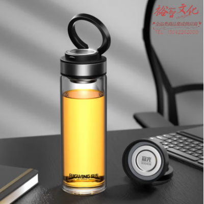 富光 G1707-DH-500便携提环玻璃杯 单层黑色500ml SKU:yzwhyp319964