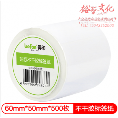 得印(befon)不干胶标签纸 铜版纸60mm*50mm 500枚 单排 条码纸 打印贴纸 SKU:yzwhyp319972