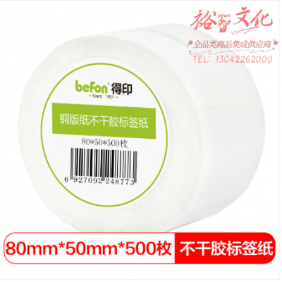 首页 > 纸及纸质品 > 纸及纸板(不包含复印纸) > 得印(befon)不干胶标签纸 铜版纸80mm*60mm 800枚 单排 条码纸 打印贴纸 SKU:yzwhyp319975