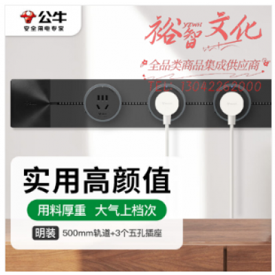 首页 > 建筑建材 > 开关插座 > 公牛(BULL)明装轨道插座 可移动滑轨插座插线板 免打孔 500mm+3个五孔 黑色 SKU:yzwhyp319980