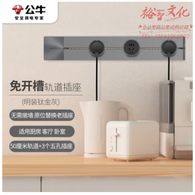 公牛(BULL)明装 轨道插座 可移动墙壁插座壁挂式/插线板/接线板 多功能免打孔 50厘米轨道+3个五孔插座灰色 SKU:yzwhyp319988