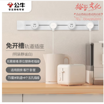 公牛(BULL)明装 轨道插座 可移动墙壁插座壁挂式/插线板/接线板 多功能免打孔 75厘米轨道+4个五孔插座白色 SKU:yzwhyp319996