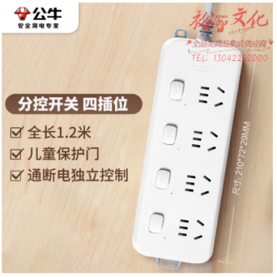 首页 > 建筑建材 > 开关插座 > 公牛(BULL)分控插座/插线板/插排/排插/接线板/拖线板 GN-B3043 4位分控全长1.2米 独立开关 SKU:yzwhyp320013