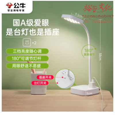 首页 > 建筑建材 > 开关插座 > 公牛(BULL)插座台灯 国A级爱眼台灯床头灯小夜灯 卧室宿舍学生学习台灯 三档调光台灯+2位总控GN-X1020 SKU:yzwhyp320017