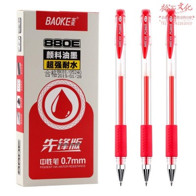 宝克(BAOKE)PC880E 0.7mm子弹头中性笔 办公水笔签字笔 红色 12支/盒 SKU:yzwhyp203854