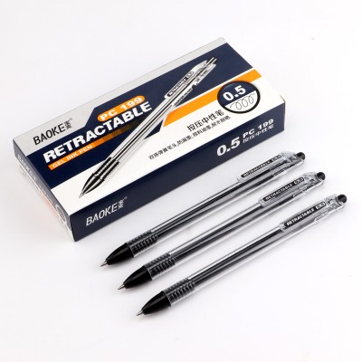 宝克(BAOKE) PC199 0.5mm黑色按压式中性笔水笔办公签名笔 12支/盒 SKU:yzwhyp203864