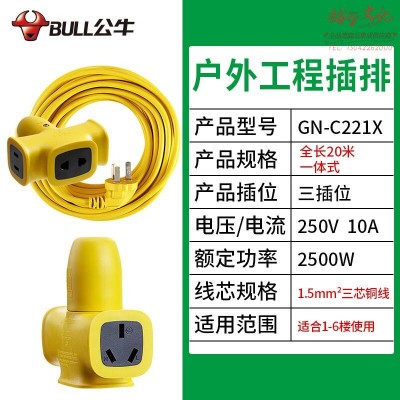 公牛加长线插座GN-C221X插线板10m15m20米黄色线防摔耐摔款插排 C221X加粗线315 20米 SKU:yzwhyp320027