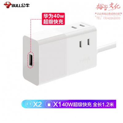 公牛 40W华为原装快充模组USB插座/插线板 USB+2孔全长1.2米 SKU:yzwhyp320095
