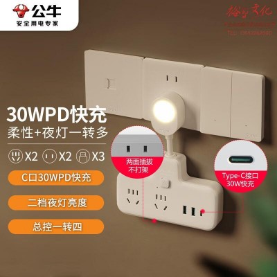 首页 > 建筑建材 > 开关插座 > 公牛(BULL)30W PD苹果快充柔性转换插头/一转四插座/无线转换插座/电源转换器 4位+USB+夜灯GN-97221Q30Y SKU:yzwhyp320106