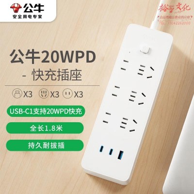 首页 > 建筑建材 > 开关插座 > 公牛(BULL)20W PD苹果快充插座/插线板/插排/接线板 Type-c口+USB口+6插孔 全长1.8米 GNV-U12033 SKU:yzwhyp320126