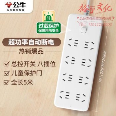 公牛(BULL)超功率保护 新国标插座/插线板/插排/排插/接线板/拖线板 GN-B2080 8位总控全长5米 SKU:yzwhyp320161