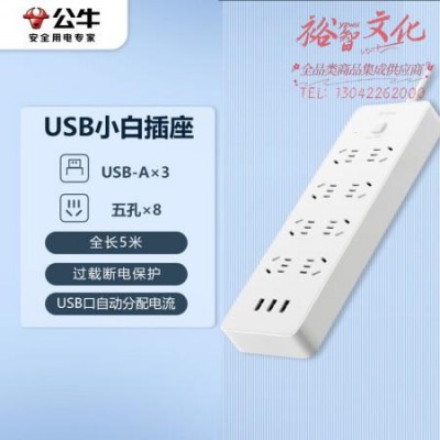 公牛(BULL)超功率保护 新国标公牛小白USB插座/插线板/插排/排插 GNV-UUN158 3usb接口 8孔全长5米 SKU:yzwhyp320165
