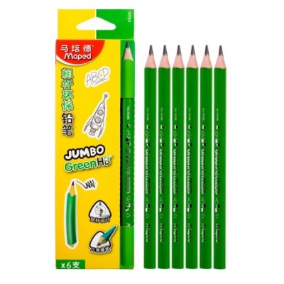 马培德 Maped 粗杆无木铅笔 6支装 学龄前儿童铅笔幼稚园宝宝写字铅笔 850620CH