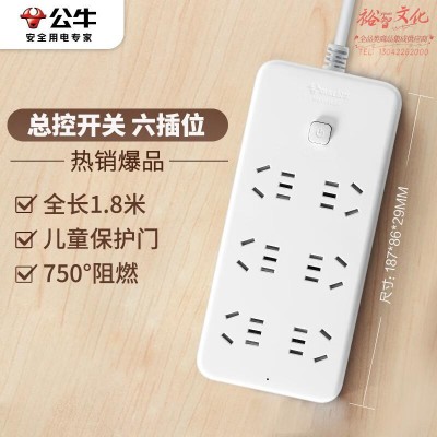 公牛(BULL)新国标插座插排 GN-B2060 6位总控全长1.8米 SKU:yzwhyp320166