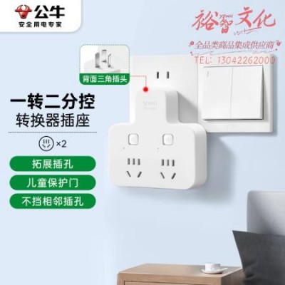 公牛(BULL)GN-98023转换插头/品字形一转二插座/无线转换插座/电源转换器 2位分控插座 SKU:yzwhyp320200