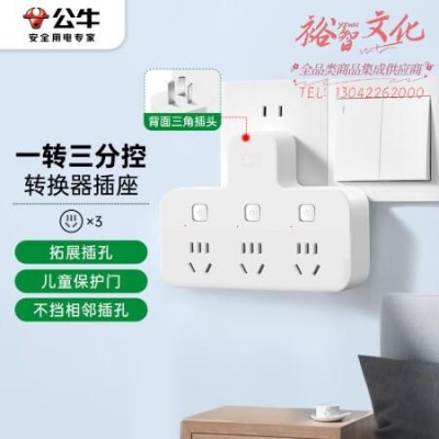 首页 > 建筑建材 > 开关插座 > 公牛(BULL)转换插头/品字形一转三插座/无线转换插座/电源转换器 适用卧室、厨房 3位分控插座 SKU:yzwhyp320201