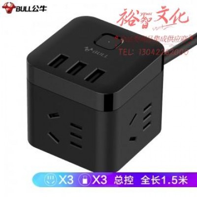 公牛(BULL) 魔方智能USB插座 插线板/插排/排插/接线板/拖线板 GN-U303H 黑色魔方USB插座全长1.5米 SKU:yzwhyp320234