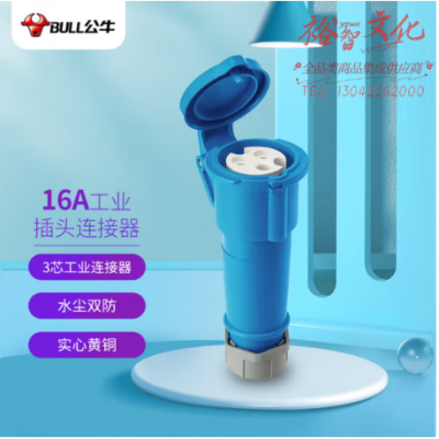 公牛(BULL)16A工业插头连接器 航空插头插座耦合器 大功率 3芯防水工业连接器 (母头) GNS-1630(Z)蓝色 SKU:yzwhyp320250