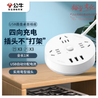 首页 > 建筑建材 > 开关插座 > 公牛(BULL)插座/插线板/插排/排插/拖线板 圆形插座 3usb接口+3孔总控 全长1米 GN-R203U SKU:yzwhyp320287
