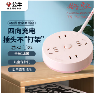公牛(BULL)插座圆形插座4位总控 全长1.8米茱萸粉 GN-R2220 SKU:yzwhyp320291