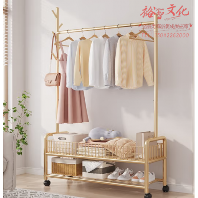 首页 > 装具 > 盥洗、厨房用织物制品 > 轻奢衣帽架落地卧室金属大容量衣架家用多功能挂衣架挂衣杆 金色-双层长90Cm SKU:yzwhyp204000