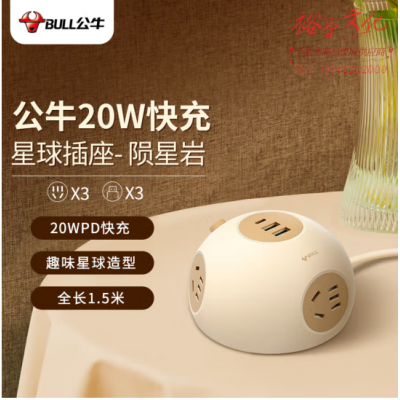 公牛(BULL)20W PD苹果快充星球插座 半球型 3个五孔+3个USB GNV-U1203Q 陨星岩 SKU:yzwhyp320479