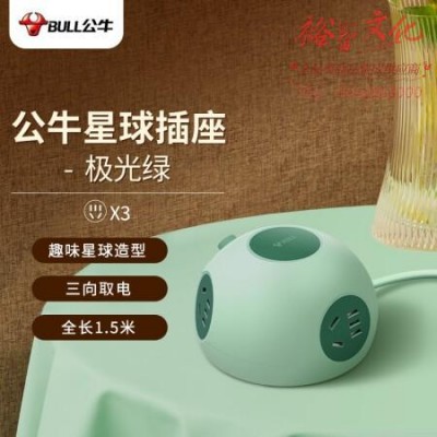 公牛(BULL)星球星际插座/插线板/插排/排插/拖线板 半球型 3位总控 全长1.5米 GNV-U103Q 极光绿 SKU:yzwhyp320489